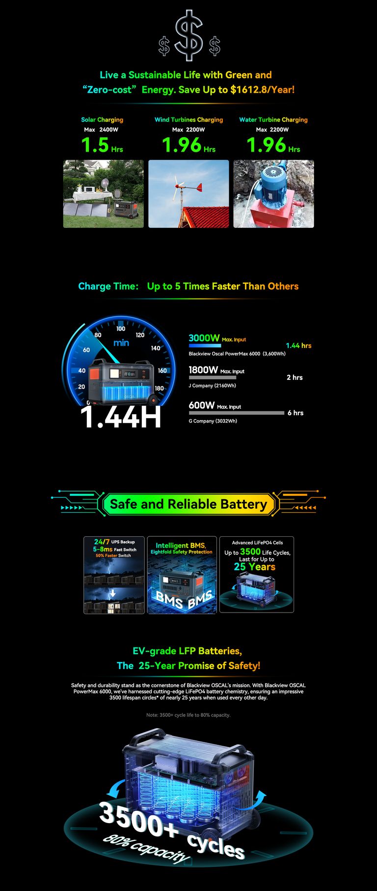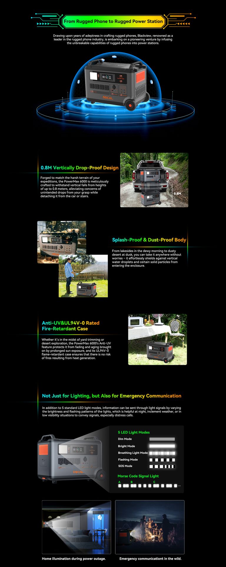 In the Box | 1xBlackview OSCAL PowerMax 6000 1x User Manual +Warranty Card 1*AC Charging Cable 1*Car Charging Cable 1*Solar Charging Cable |